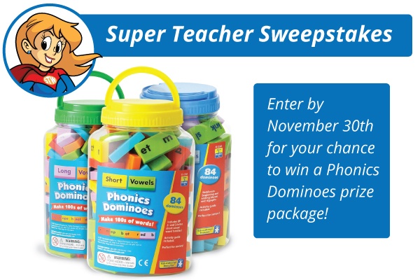 There's still time to enter the November giveaway! This month's prize, a set of phonics dominoes, will help young learners form words and sentences. It's a great classroom activity! Phonics dominoes include long-vowel sounds, short-vowel sounds, and consonant blends. Read More